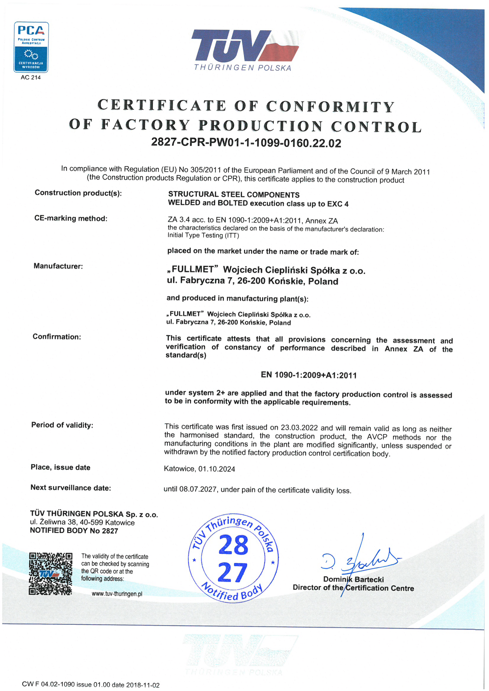 Certificate of conformity of factory production control