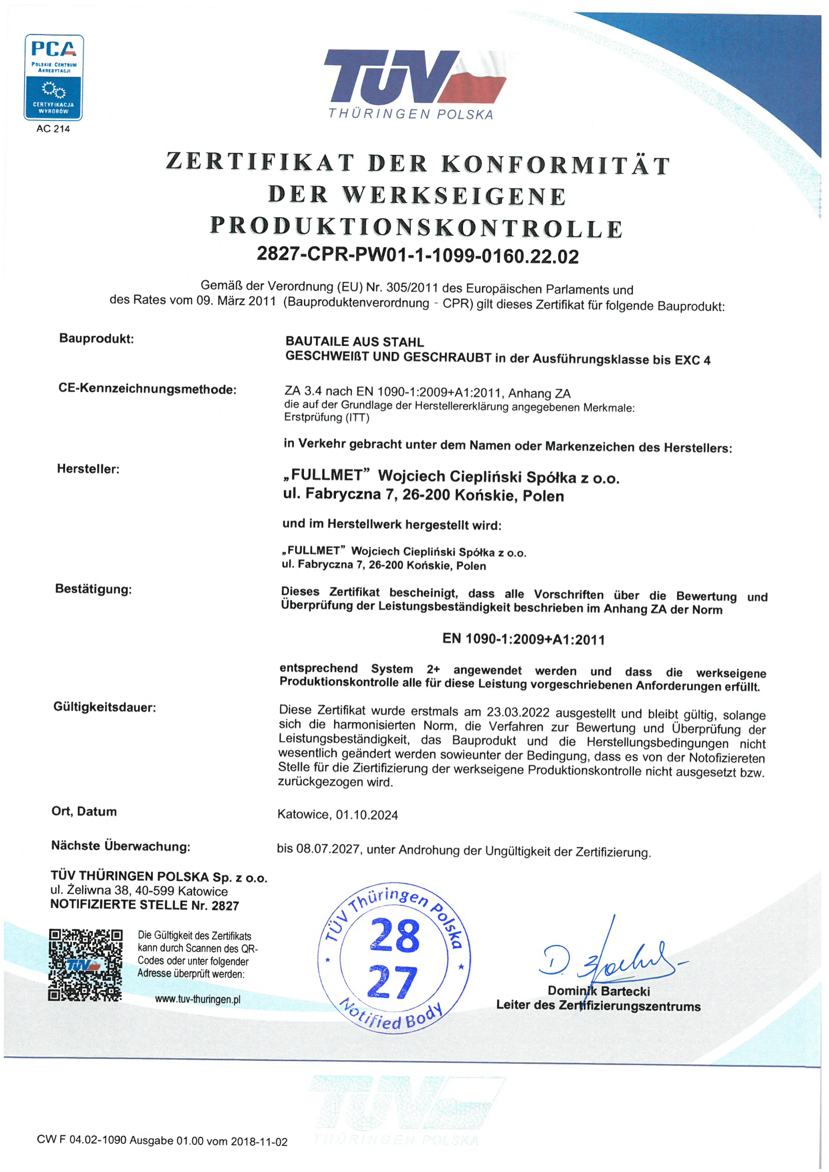 Zertifikat der Werksproduktionskontrolle