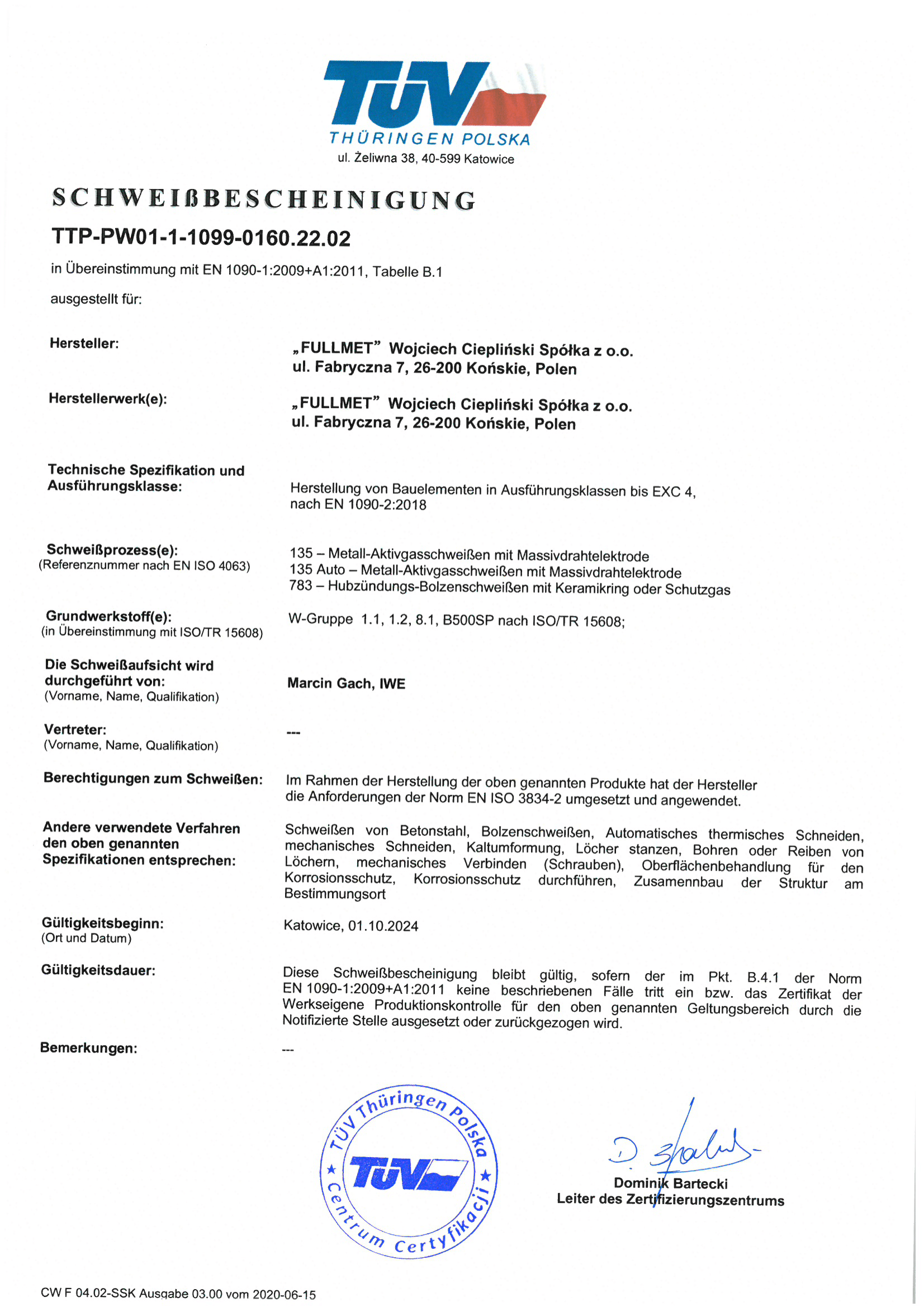 Schweißzertifikat